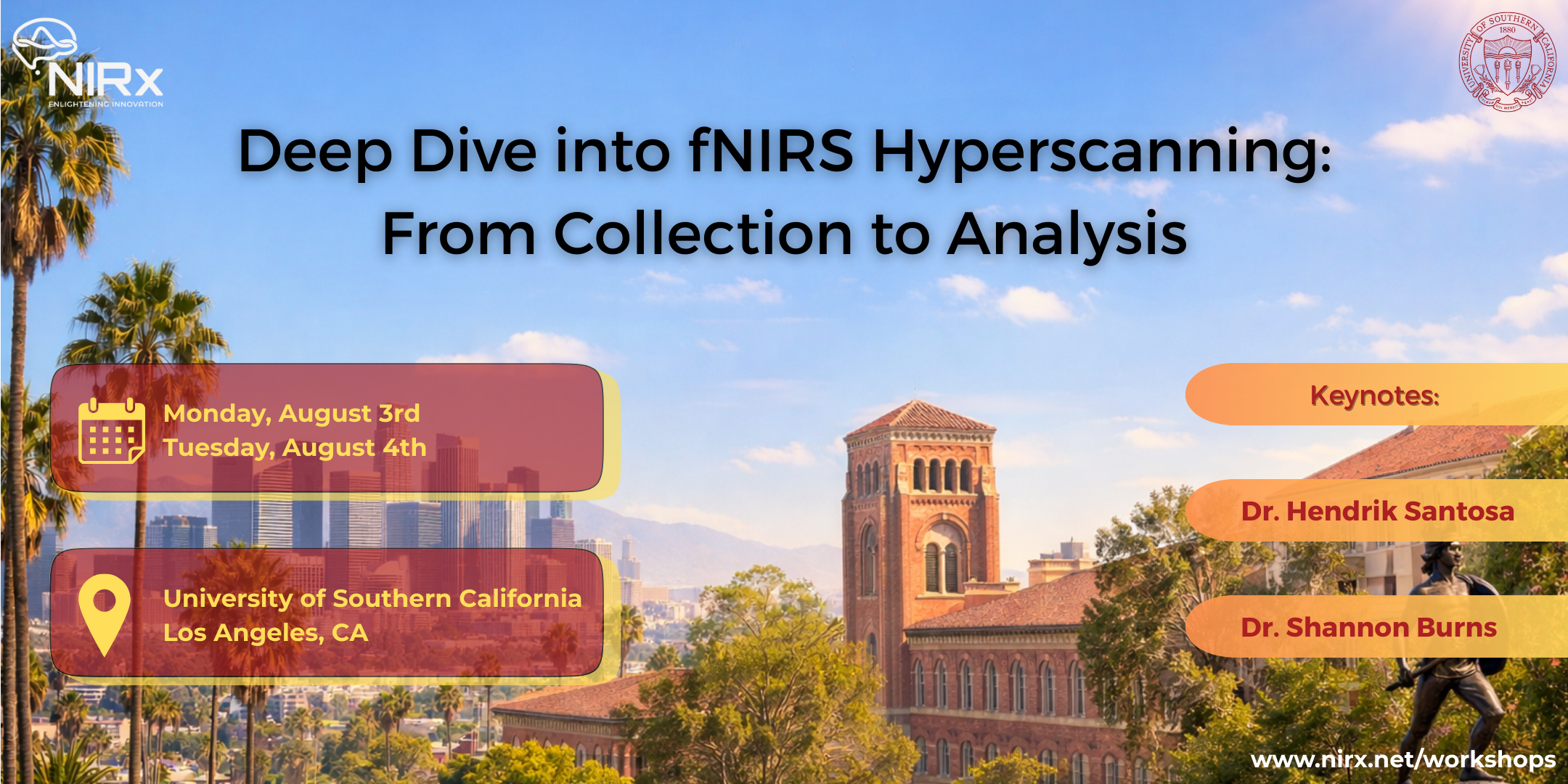 Join us for an immersive two-day workshop exploring the cutting edge of functional near-infrared spectroscopy (fNIRS) and hyperscanning research. Hosted by NIRx Medical Technologies in collaboration with Dr. Elisa Baek and the University of Southern California, the interactive event features leading fNIRS and hyperscanning experts, including Dr. Hendrik Santosa and Dr. Shannon Burns, and offers hands-on experience with the latest methodologies and analytical strategies. Designed for both newcomers and experienced researchers across disciplines, the workshop provides practical insights to drive meaningful, real-world impact.
